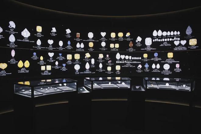 现场让我印象最深的展厅,当属“钻石臻品”。一走进去,就会被环绕的镜面元素,以及天花板的华丽装置所吸引。模拟钻石切割的形态,让人仿佛融入到了钻石璀璨的中心。巧妙延伸着整个空间,视觉美轮美奂。