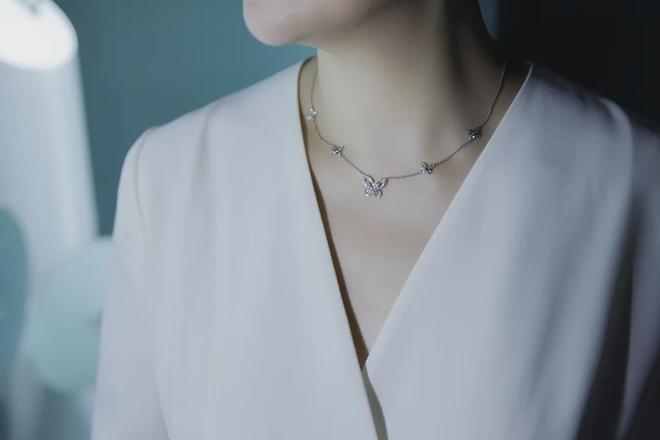我当天佩戴的Graff的蝴蝶系列项链,轻盈灵动的设计,恰好与观展时内心的愉悦相呼应。对我而言,蝴蝶振翅高飞,象征着“福叠”,又闪又亮的同时,也能带来长久美好。