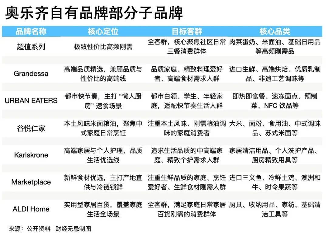 在价格上,从主打极致低价的超值系列到中高端品质的Grandessa、Karlskrone,奥乐齐实现了自有品牌的价格分层;在场景上,URBAN EATERS适配都市白领们的快节奏即时需求,谷悦仁家、Marketplace则聚焦居家烹饪,ALDI Home则满足生活百货需求,由此奥乐齐实现了“一日三餐+日常家用”全场景覆盖。