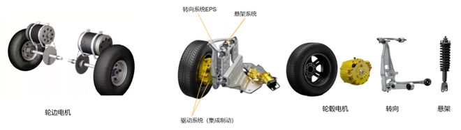 作为当前电四驱的终极驱动形式(轮边电机),分布式驱动也在逐步平台化,后续将会演进为分布式轮毂电机驱动进而扩展为角模块集成式驱动。这里要说明一下轮毂电机跟角模块还是有一定区别的,轮毂电机是将动力、传动与制动装置集成于轮毂内部的新的电机形式。而角模块的定义是以轮毂电机作为动力源,并在轮边独立集成有转向系统、制动系统和悬架系统的分布式电驱车辆行驶单元被称为角模块。